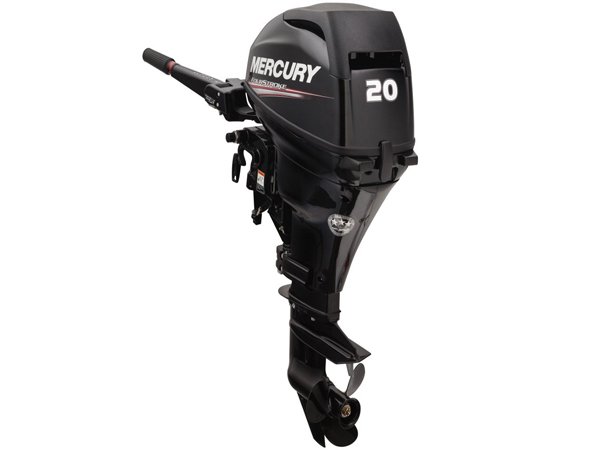 The Mercury outboard motor 20ELHPT model is an electric start outboard with a 20 inch shaft with Power Tilt and multi function tiller handle. This low end torque engine has the power and prop needed to quickly plane your boat. Known for reliability, and fast acceleration, the 20 HP portable outboard by Mercury is an affordable option especially considering the long list of standard features and the Mercury 3 year warranty.