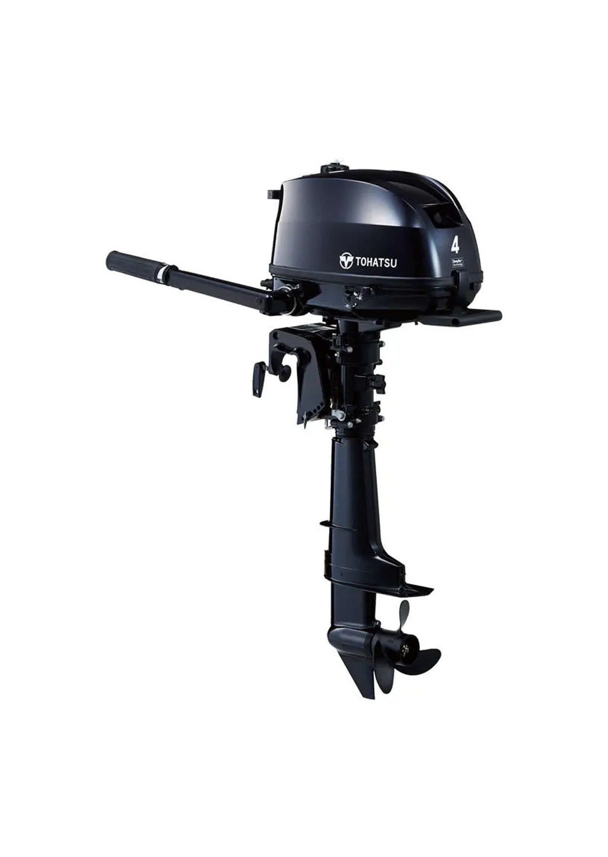 The Tohatsu 4hp outboard motor is a great choice for small fishing boats, small to medium sized inflatables and sailboats. The Tohatsu model MFS4DDL comes equipped with a 20 inch shaft, a twist grip throttle, forward-neutral-reverse gears, and digital CDI ignition are just a few of the features found on the Tohatsu 4hp outboard engine. The new MFS4DDL also comes equipped with the newly designed top and bottom cowls based on Tohatsu Design Philosophy for Marine Products, 3-way storage positions without worrying about oil spill, ultra-low emission, EPA and CARB 3-Star rating approved, and the newly designed Tohatsu unique front and back carrying handles for easier transportation. The 4hp Tohatsu outboard features an integrated fuel tank for grab-and-go portability. External tank ready connections are built-in which make adding an external fuel tank and line quick and easy. .